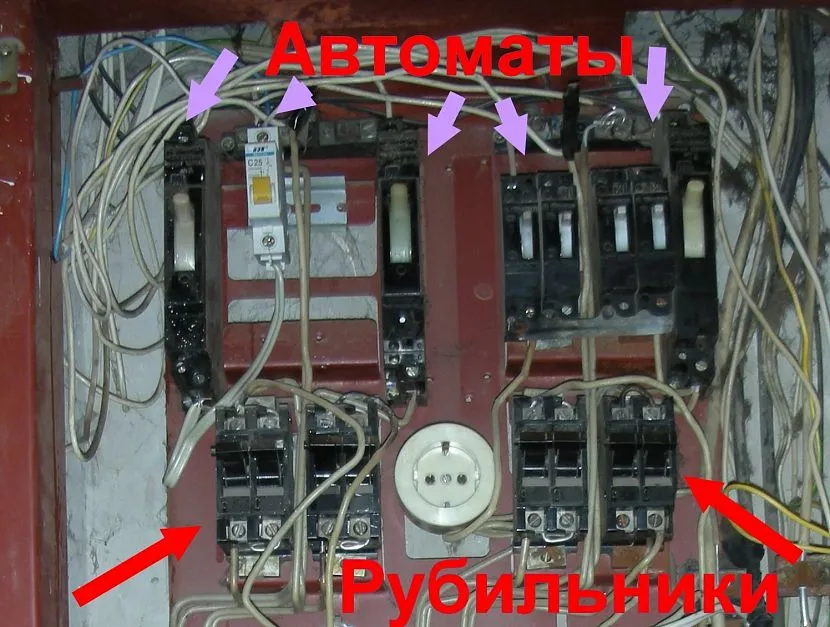 Рубильник встроен в электрический щиток Источник grand-electro.ru Дополнительное освещение делается по всей линии до электрического щитка, чтобы не возникло проблем в темноте при отключении света по всему дому);