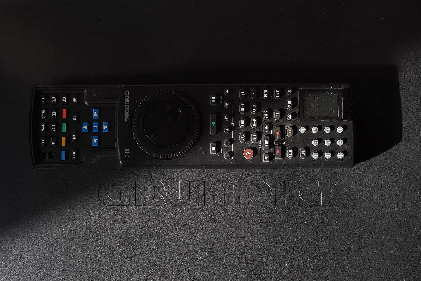 Пульт дистанционного управления GV-464 оснащен ЖК-дисплеем и имеет выдвигающуюся дополнительную панель с органами управления прочей техникой Grundig