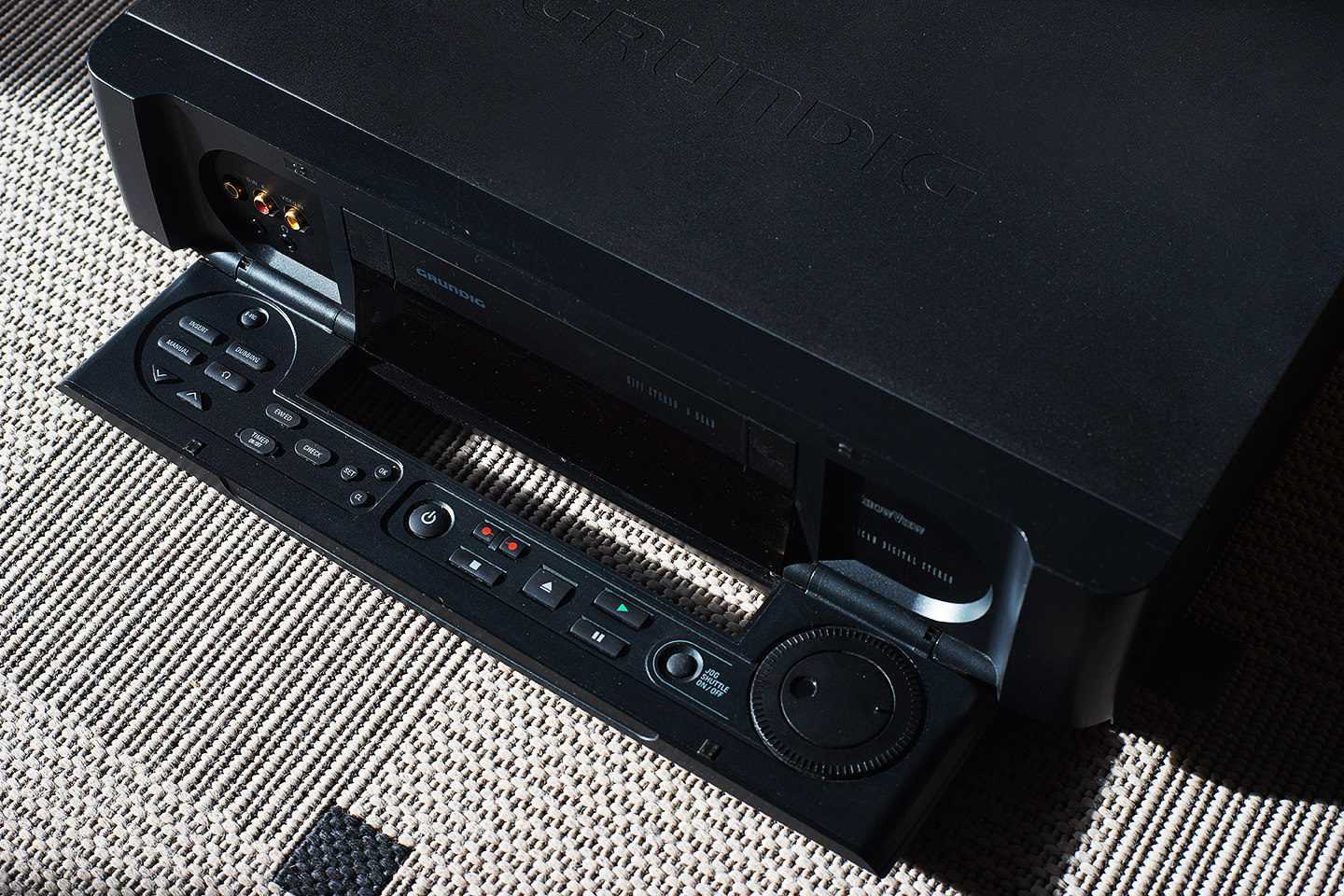 Работать с GV-464, как и любым видеомагнитофоном классом выше среднего, было легко и приятно. Видимо, за стрелочными индикаторами кто-то ностальгировал уже тогда, так что у Grundig мы видим их стилизацию на FL-дисплее. Откидывающая крышка открывает вид на органы управления и гениальный элемент 80-х — круглый «шаттл», который продублирован также на двухуровневом системном пульте ДУ. Чуть вращаете «колесо» по часовой стрелке или против — кассета послушно перематывается вперед или назад. Сейчас, в эпоху тачскрина, этот элемент совсем исчез, а зря. Управлять через физический энкодер комфортнее в той же мере, сколь и печатать на клавиатуре вместо стеклянной панели айпада.