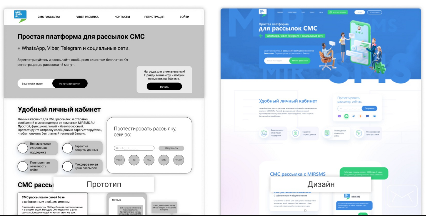 Сравните прототип и финальный дизайн. Воспринимать работу форм и наполнении страницы сложнее на примере справа, ведь там есть цвет, картинка и иконки.