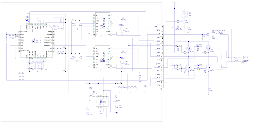 Помимо egs002, на трансформаторе так же есть плата eg8010. Это специальная плата, с помощью которой появляется возможность довольно быстро собрать инвертор 12/220, используя мостовую схему, с чистым синусом, который появится на выходе. eg8010 так же имеет драйверы для управления ключами. Самый популярный из драйверов – IR2110. Таким образом, обе платы, egs002 eg8010 на трансформаторе вполне могут использоваться вместе.