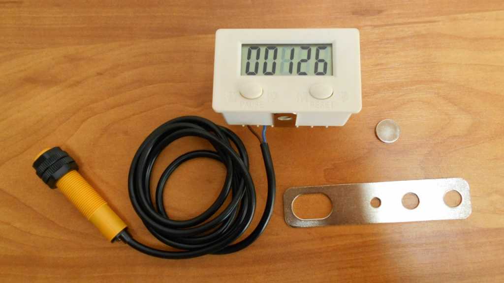 Герконовый датчик я прикрутил к алюминиевой стойке с помощью крепежной пластины. Неодимовый магнит закрепил на ручке. Для правильной работы прибора необходимо установить зазор между герконовым датчиком и неодимовым магнитом не более пяти миллиметров. Каждое прохождение неодимового магнита над герконовым датчиком счетчик оборотов считает за один виток.