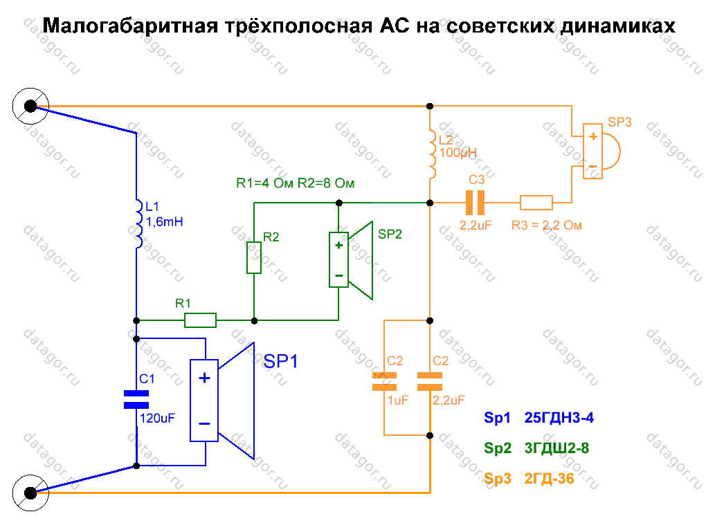 Для уравнивания чувствительности с ВЧ и повышения мощности, в АС использовалось 3шт переделанных 4гд-35, соединённых последовательно.