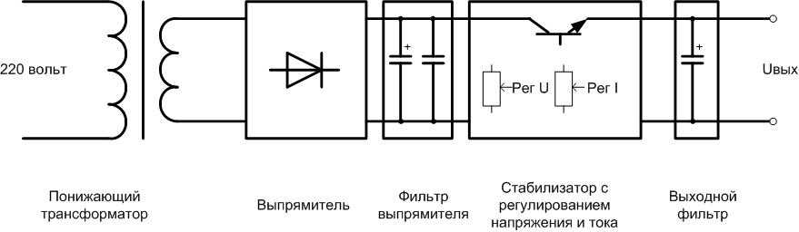 Трансформаторный источник питания в большинстве случаев выполняется по следующей структурной схеме.