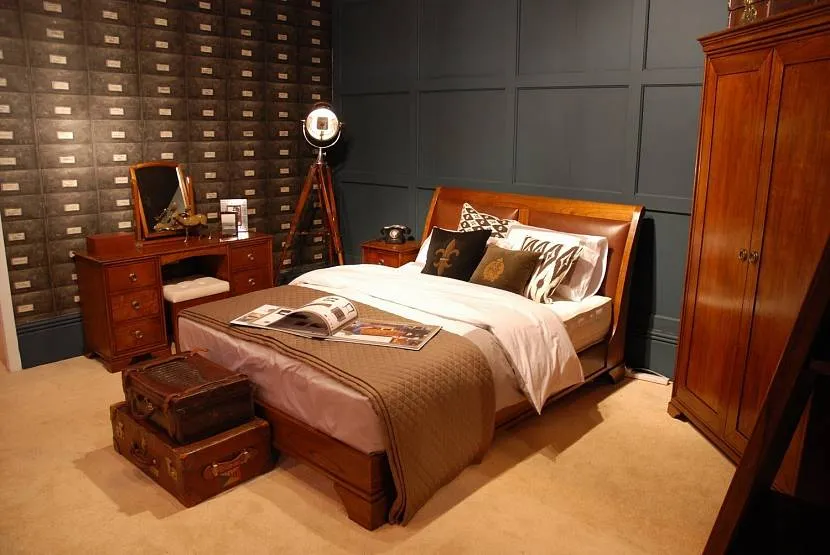 Спальня в интерьере ретро с установленной деревянной массивной мебельюИсточник roomester.ru
