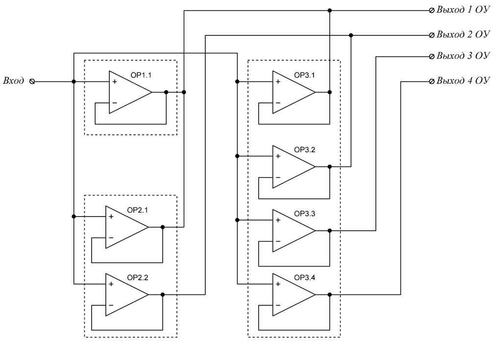 Рис. 9. Подача опорного напряжения на ИУ с низкоимпедансного выхода ОУ