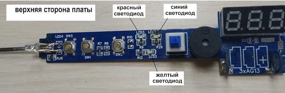 При положительном сигнале на игле – светится красный. При отрицательном – соответственно синий + звуковой сигнал.Фото красногоФото синего.