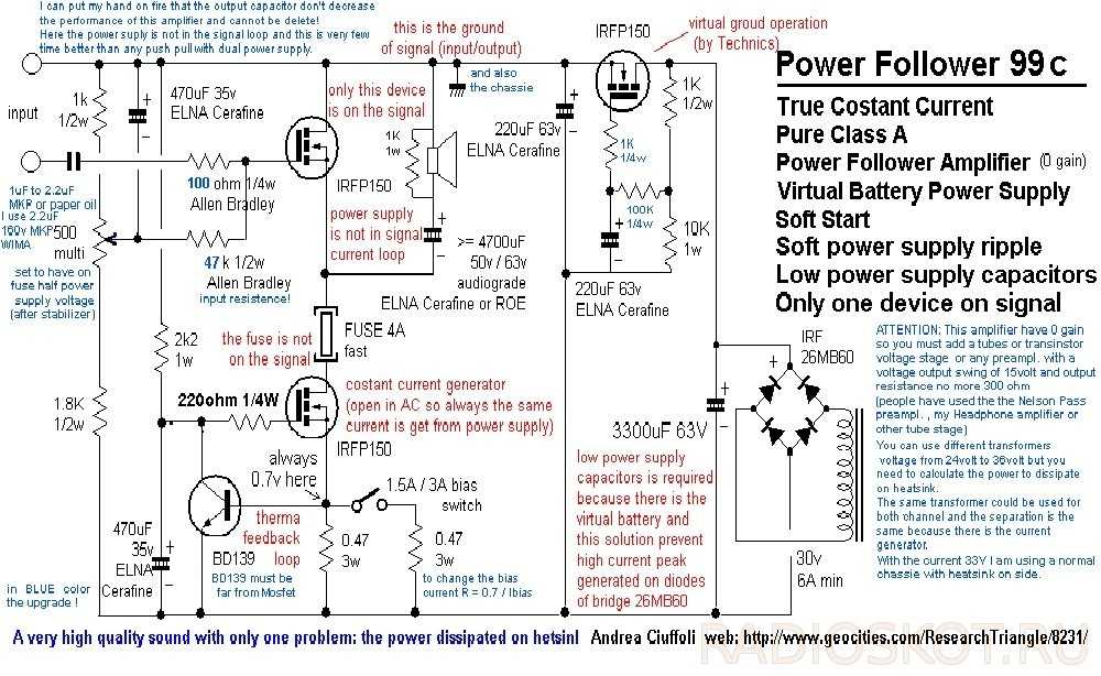 Как это часто бывает сыграла невнимательность. Огромное спасибо другу Сергею, который изучив оригинальную статью на английском языке подсказал, что схема этого оконечного усилителя не что иное, как, цитирую «усилитель тока, и коэффициент усиления по напряжению у него равен 1. Именно поэтому к нему делают специальные ламповые предусилители или на транзисторах с высоким питающим напряжением», конец цитаты.
