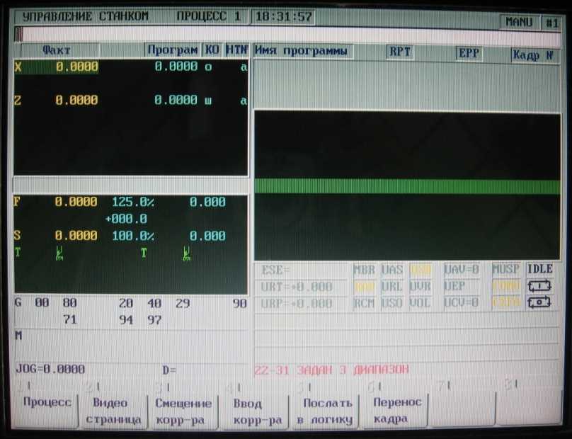 Диалог оператора с системой в режиме управление станком производится через видеостраницы #1 – #7 (рис. 2.9). Графическая информация выводится на видеостраницу #6 (рис. 2.Х).