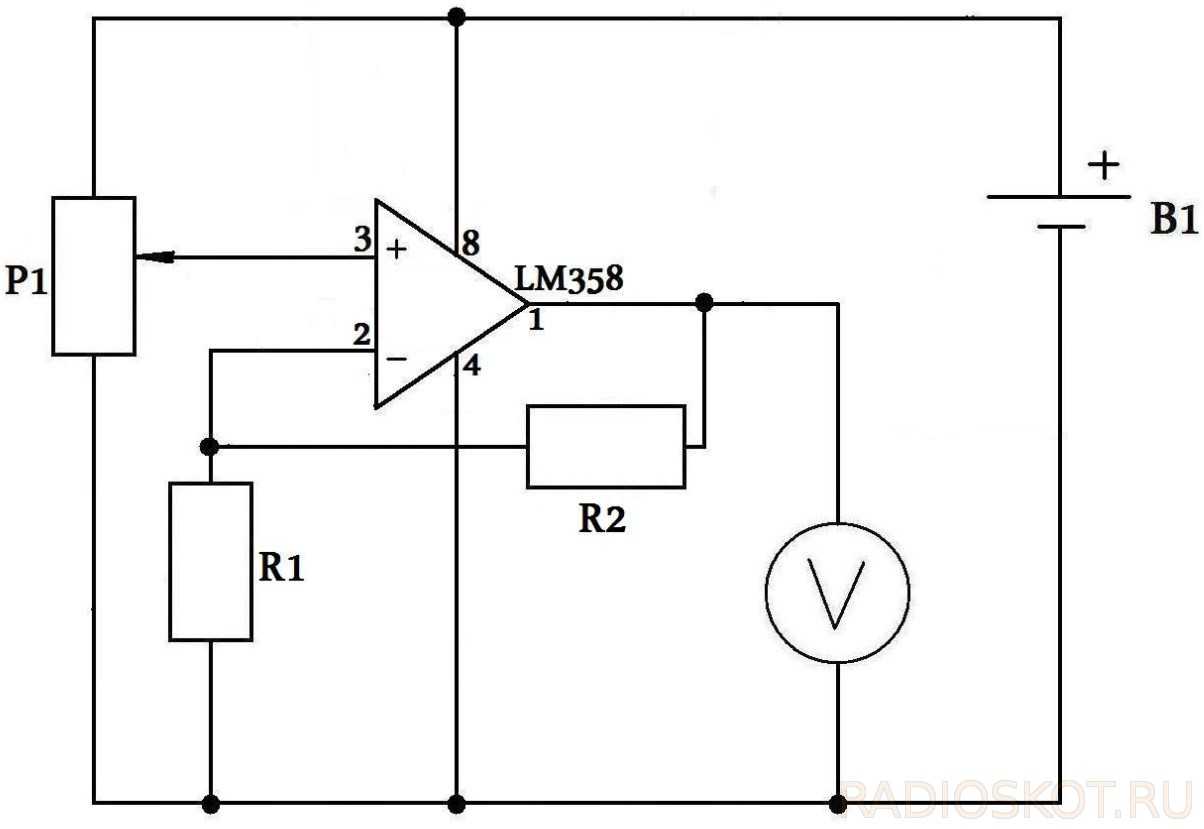 Ниже приведем несколько простых схем включения lm358 которые могут вам пригодится. Все они являются ознакомительными, так что обязательно проверяйте все перед внедрением в производственной сфере.