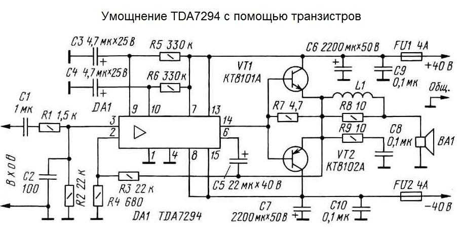 Назначение выводов микросхемы TDA7294Вывод микросхемы Обозначение Назначение Подключение