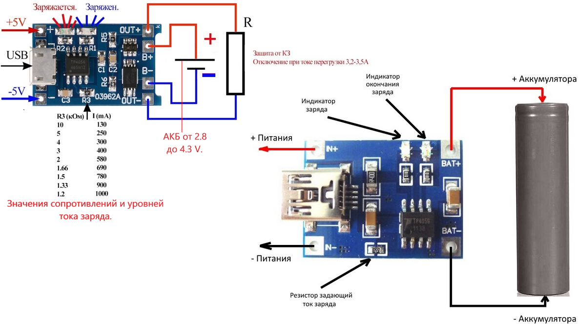 При эксплуатации литий-ионных аккумуляторов, необходимо правильно заряжать устройство и контролировать этот процесс. Зарядка осуществляется по специальной схеме, а контроль при помощи дополнительных плат или обычного сопротивления (резистора).