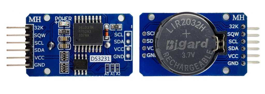 The DS3231 in a narrower sense is the large IC with the 16 pins, which can be easily recognized on the board. A data sheet about it can be found here. In this article, however, I always refer to the module, even if I speak of the DS3231 in short form.