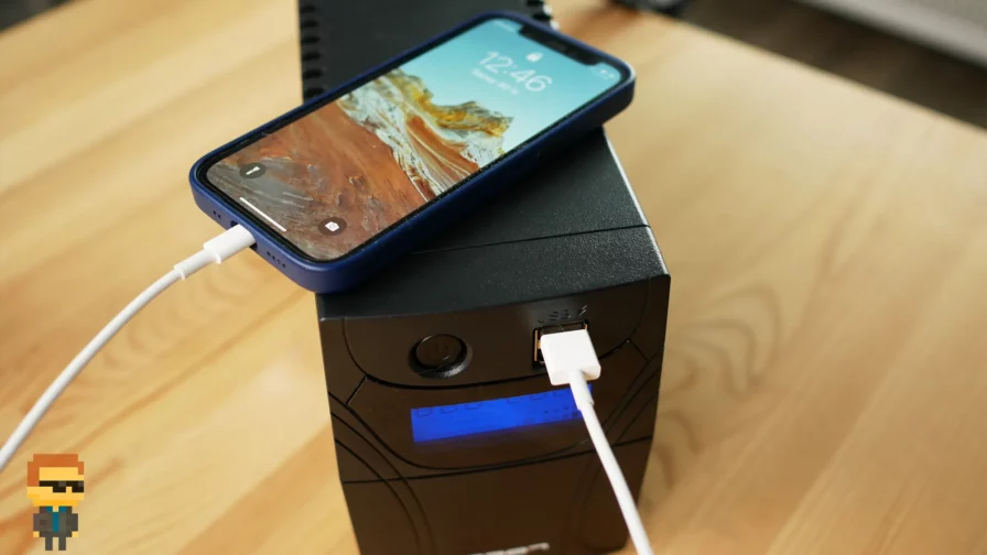 Когда нет электричества, но нужно зарядить телефон — подключаем девайс кабелем к порту USB-A ИБП. Мобильное устройство или беспроводные наушники будут заряжаться и при работе от сети. Но быстрая зарядка не поддерживается. Удобный резервный способ пополнения зарядки смартфона.