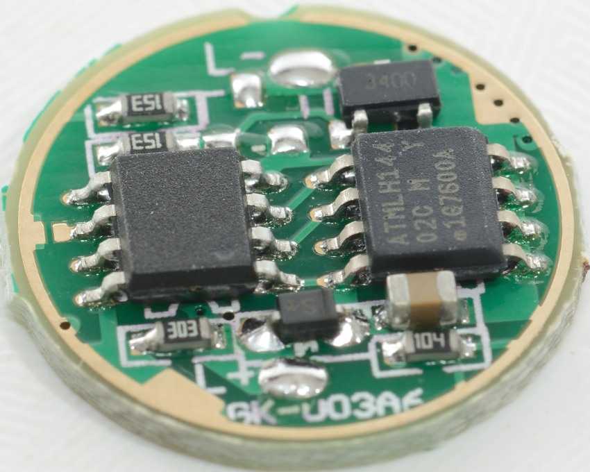 - применяется плата, изготовленная из сплава алюминия, эффективно отводящая избыток тепла на радиатор;
