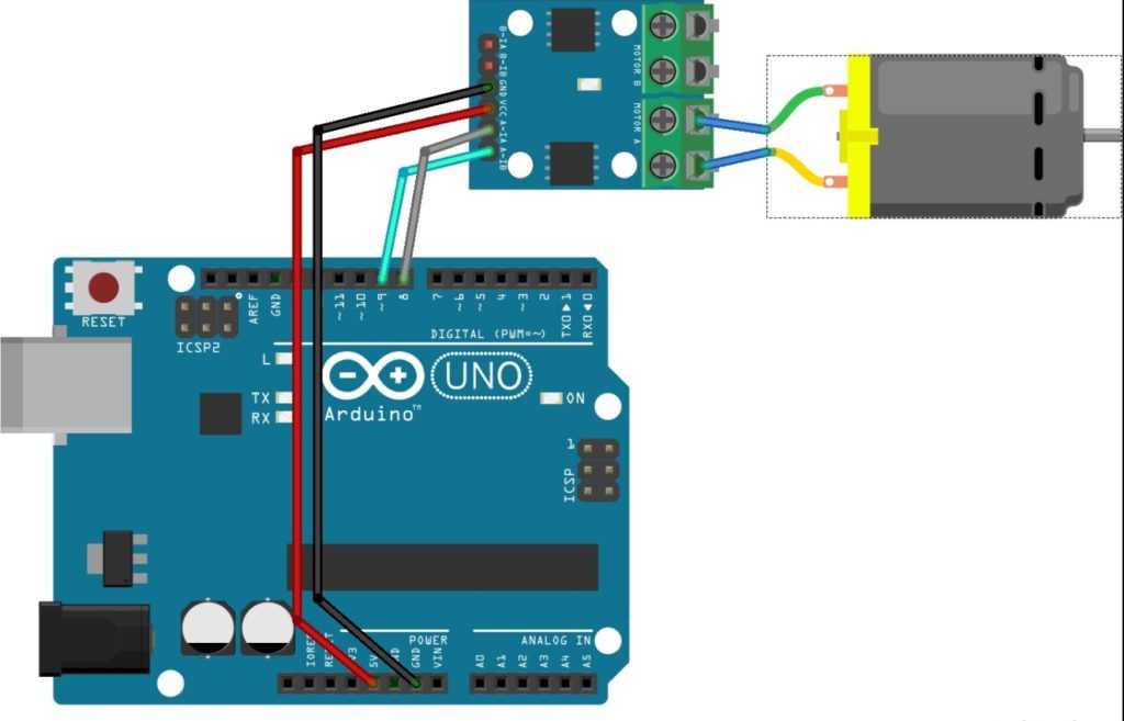 Подключение одного двигателя к Ардуино изображено на рисунке.