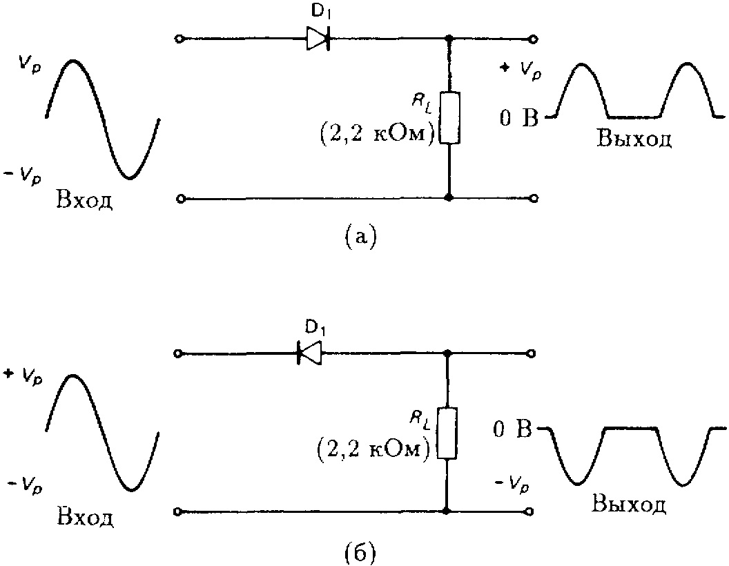 Диод, включенный таким образом, что приводит ток только при положительных полупериодах входного колебания, т.е. когда напряжение на его аноде больше потенциала катода. Среднее значение колебания, полученного в результате выпрямления синусоидального напряжения с действующим значением и максимальным значением , равно