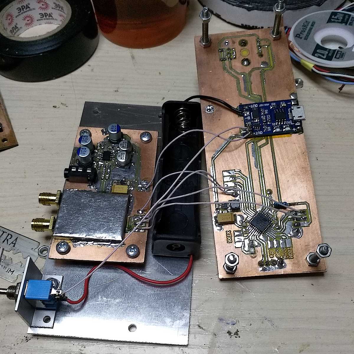 На этом фото видна опытная работа по подбору пьезофильтров, дающих звук получше.