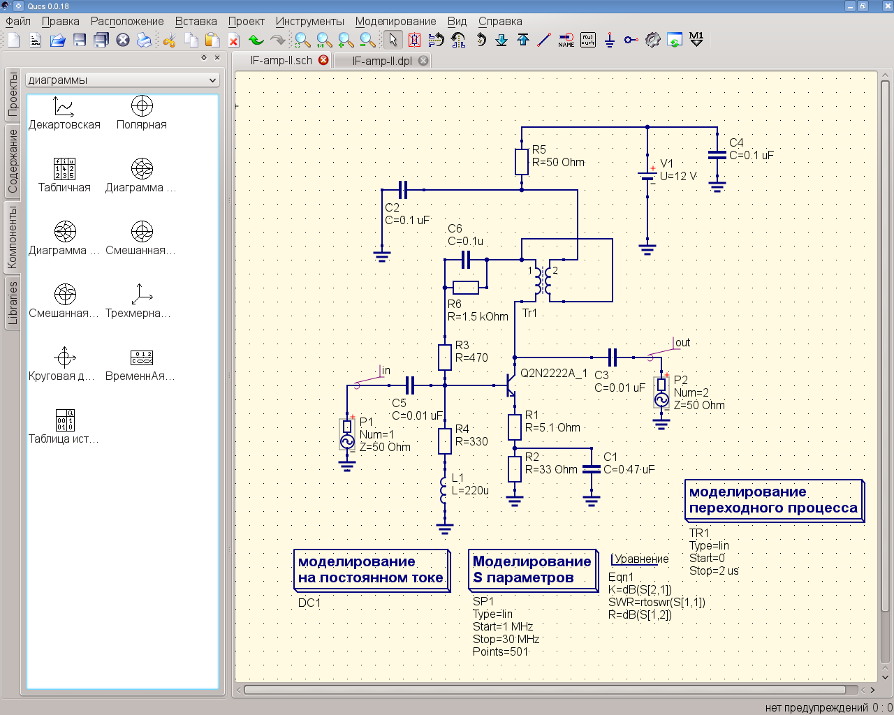 Можно заключить, что несмотря на свои недостатки Qucs представляет собой весьма достойную альтернативу проприетарным САПР для моделирования электронных схем.