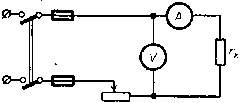 xтак как амперметр измеряет сумму токов в сопротивленииrх и в вольтметре. Если измеряемое сопротивление значительно меньше сопротивления вольтметра, погрешность будет небольшой.