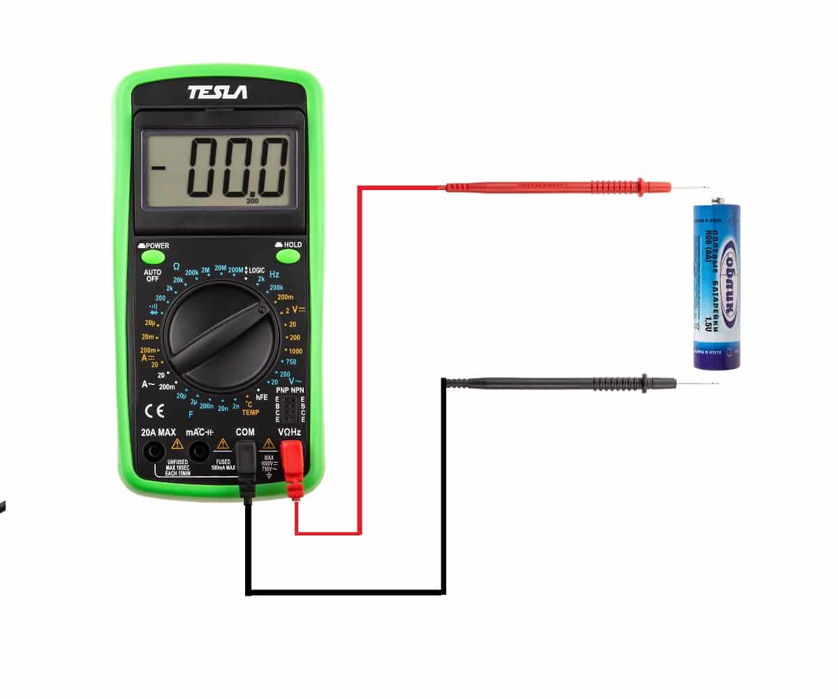Инструкция для измерения постоянного напряжения в аккумуляторе или батарее
