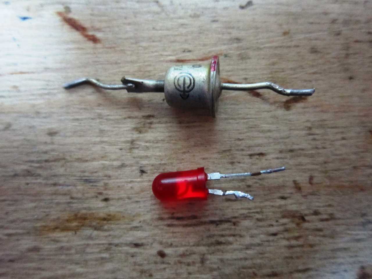 На фото ниже у нас простой диод и светодиод.