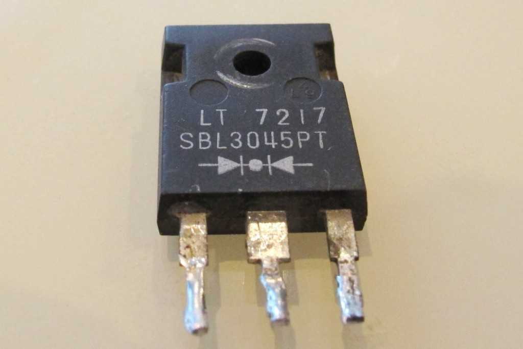 Для наглядности мы , проведем небольшую проверку диода Шоттки SBL3045PT . Этот диод от блока питания ПК , рассчитан производителем до 45 В , 30 А . ( т . е . по 15 А на каждый диод ).