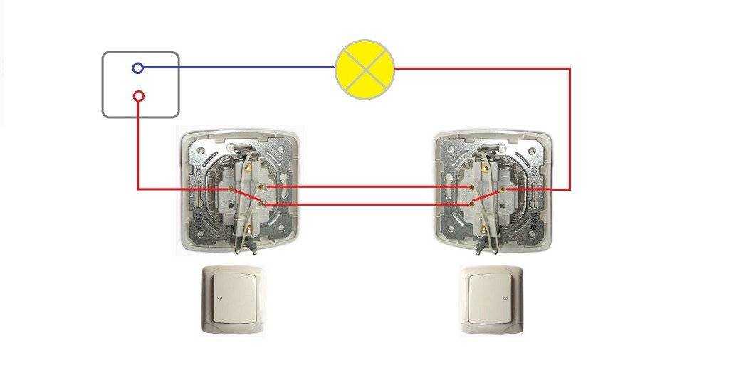 Однако проекты на управляющих точек применяются достаточно активно. При последующем переключении любого из выключателей, в произвольном порядке, светильник будет то выключаться, то включаться. Как уже было сказано выше, при отсутствии схемы контакты лучше вызвонить при разных положениях клавиши.