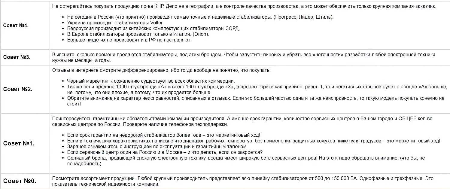 Советы по выбору стабилизатора