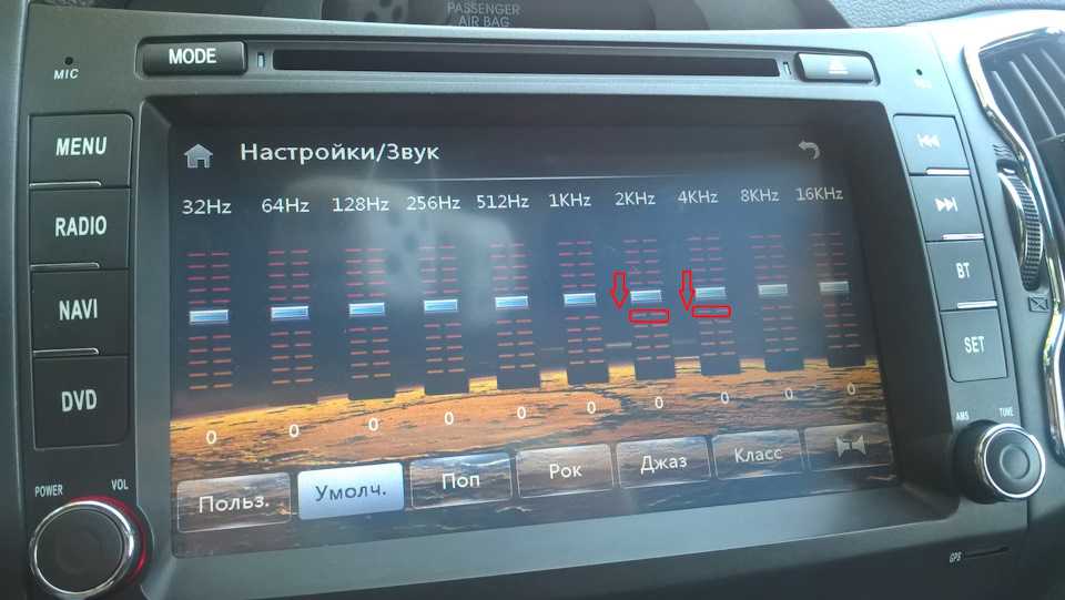 Эквалайзер позволяет сделать звучание более ровным – поднять или понизить басовые, средние и высокие частоты.Это довольно тонкая настройка аудиосистемы. Регулируется не весь диапазон звука сразу, как в других пунктах меню, а конкретные полосы частот. У разных моделей встречается разное их количество, в зависимости от класса оборудования. В магнитолах Pioneer их пять: 80 Гц, 250 Гц, 800 Гц, 2,5 кГц 8 кГц.
