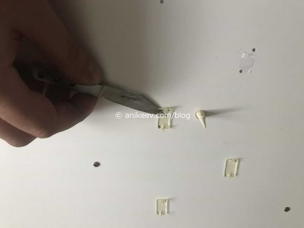 Снятие рассеивающих линз с планок, с учетом метки на корпусе линзы. Это необходимо для обратной установки линз на свои места с точной их ориентацией. Для исключения засвета на экране ТВ.