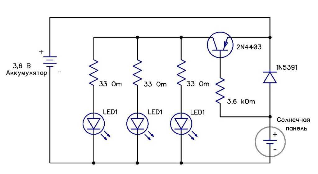 Ниже приведена базовая схема светильника на солнечной батарее.