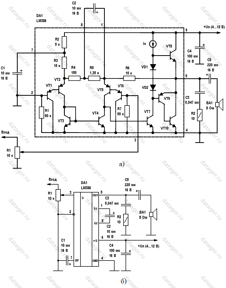 ↑ Другие варианты применения микросхемы LM386
