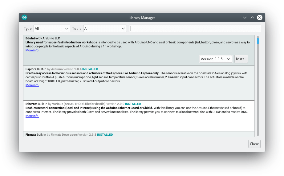 You can also use libraries in your sketches that are not available in the Arduino library manager. They must be in ZIP format. You can use import them in Sketch -> Include Library -> Add .ZIP Library.