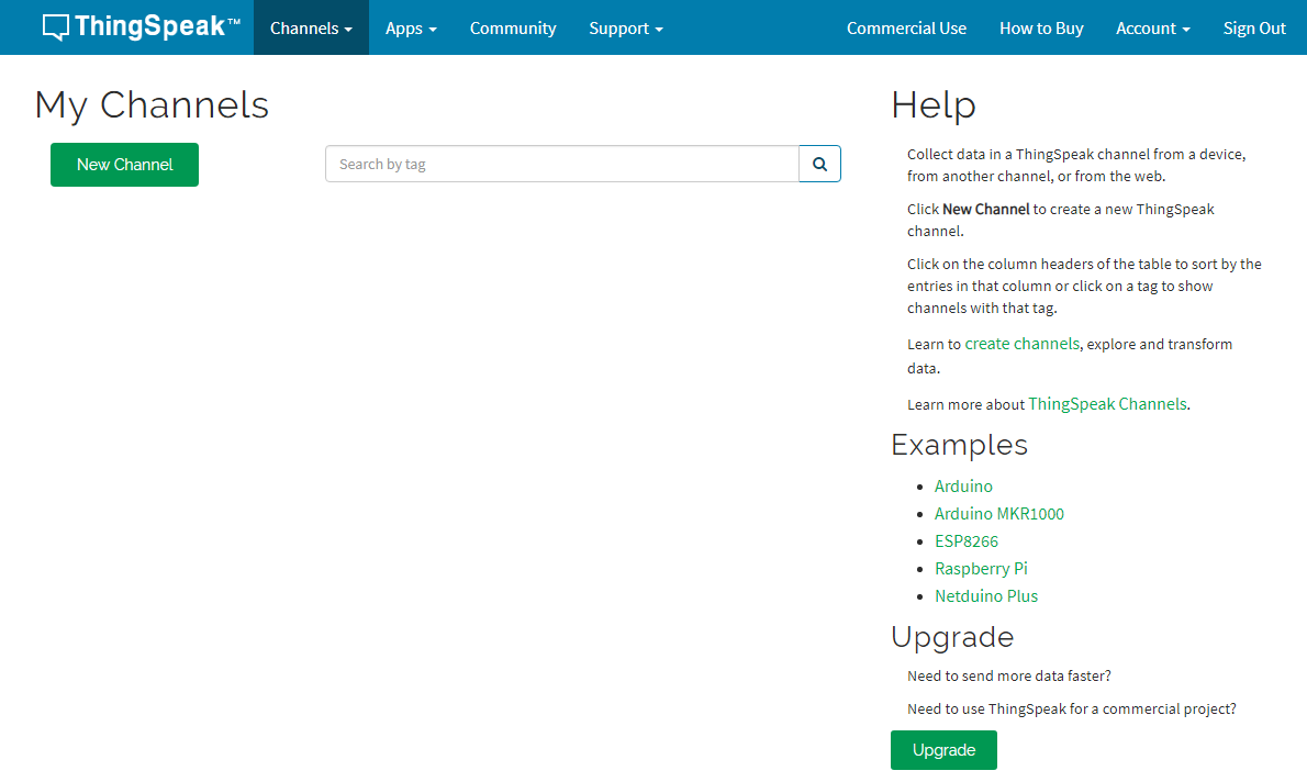 7. Регистрация завершена, можно создавать каналы. Каналов потребуется столько, сколько у нас датчиков, то есть как минимум четыре. Для создания канал нажмите “New Channel”: