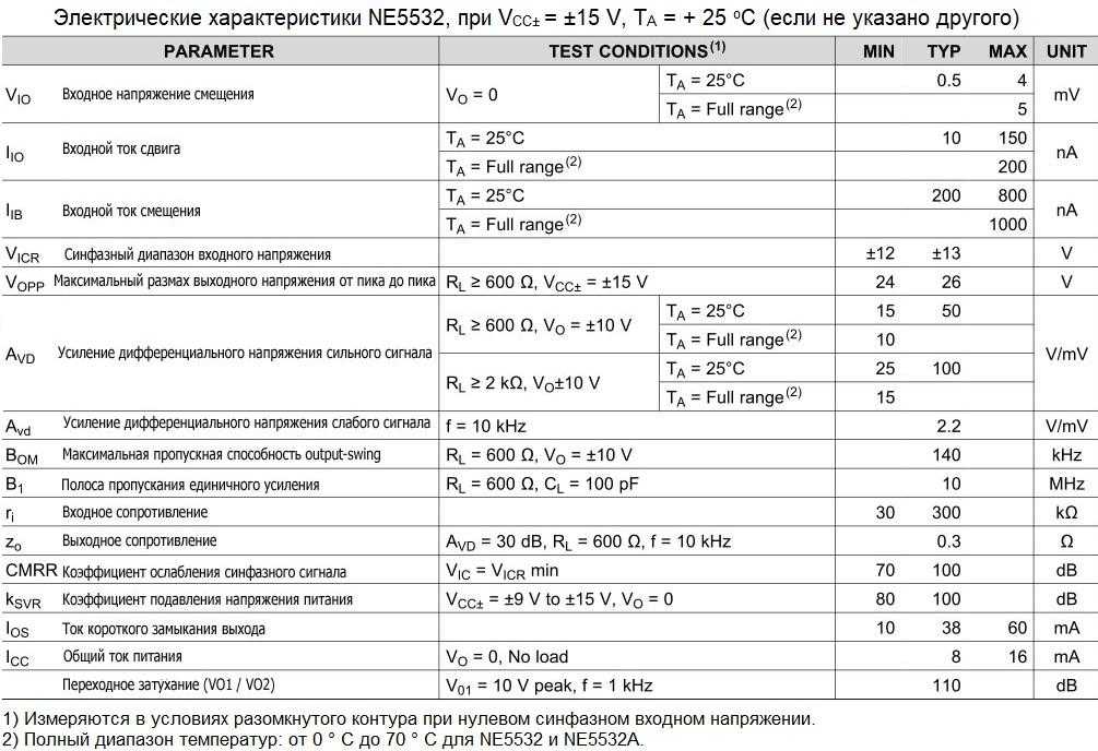 Стабильная работа ne5532 на максимальных значениях параметров невозможна. Они приводится производителями в техническом описании лишь для отражения предельных возможностей микросхемы. Например, даже кратковременная работа кристалла при температуре +150 oC может привести к перегреву и выходу устройства из строя. Поэтому в даташит также приводятся рекомендуемые условия эксплуатации.