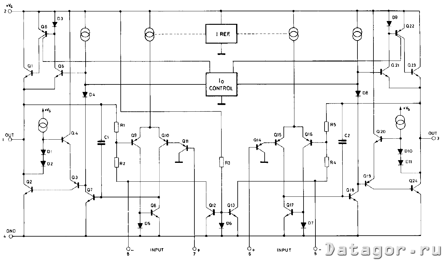 Устройство питается от двухполярного стабилизированного источника питания +- 30 В. Таким образом напряжение между положительным и отрицательным выводами питания составляет 60 В.