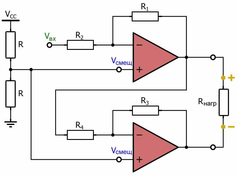 Рисунок 3 – Мостовой усилитель с однополярным питанием