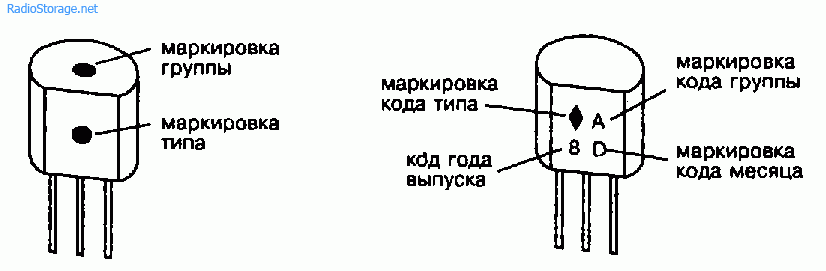 Транзисторы, как и другие радиокомпоненты, маркируют с помощью цветового кода. Цветовой код состоит из изображения геометрических фигур (треугольников, квадратов, прямоугольников и др.), цветных точек и латинских букв.