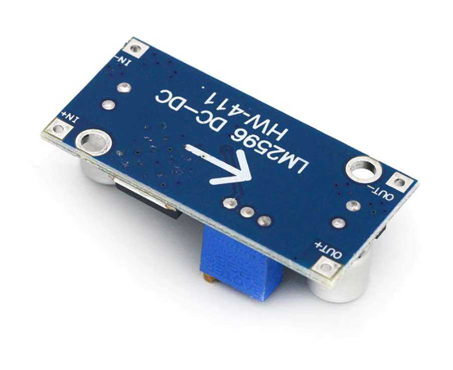 Еще один вариант использования преобразователей — стабилизатор силы тока. Модуль данной микросхемы подключает светодиодную автомобильную матрицу LM2596 с мощностью 10 Вт, в дополнение обеспечивая предотвращение КЗ.