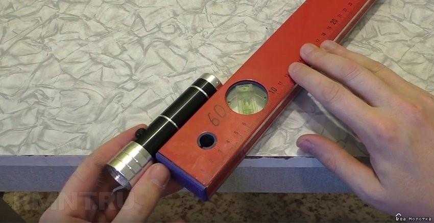 Если необходимо быстро сделать нужные отметки во время работы, а под рукой не оказалось указки с лазером, есть пошаговое руководство, для создания самому одноразового уровня, без применения штатива.