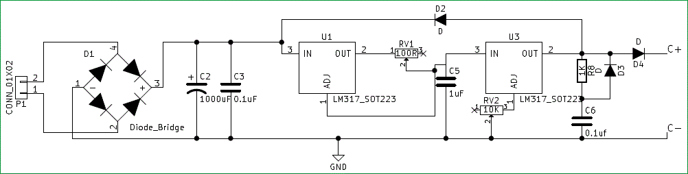 Двухполярный БП LM317 и LM337, для получения положительного и отрицательного напряжения.