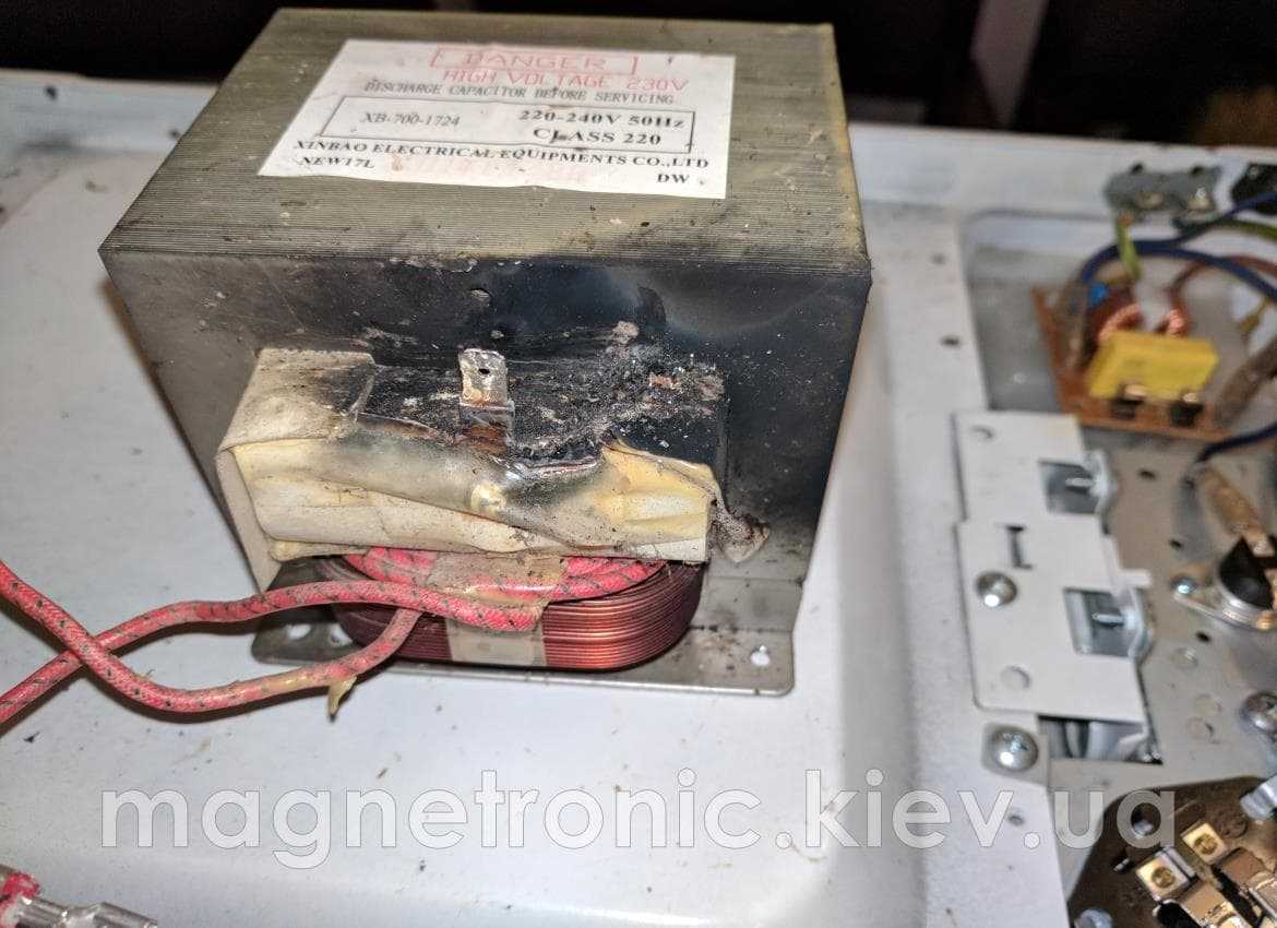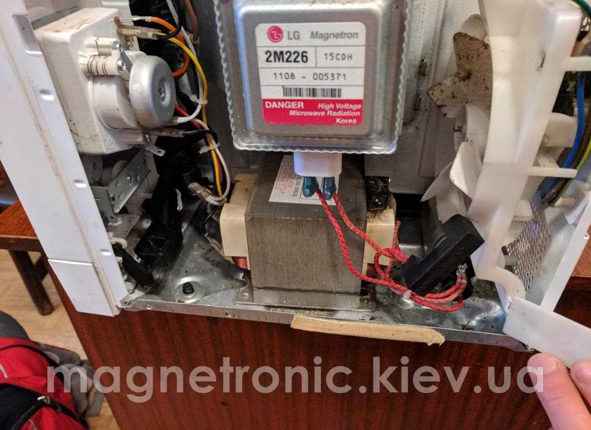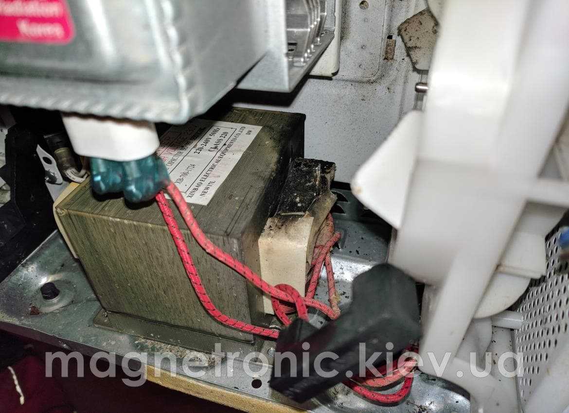 Работа микроволновки сопровождается громким гулом, и запахом гари, при этом обмотка трансформатора сильно греется.