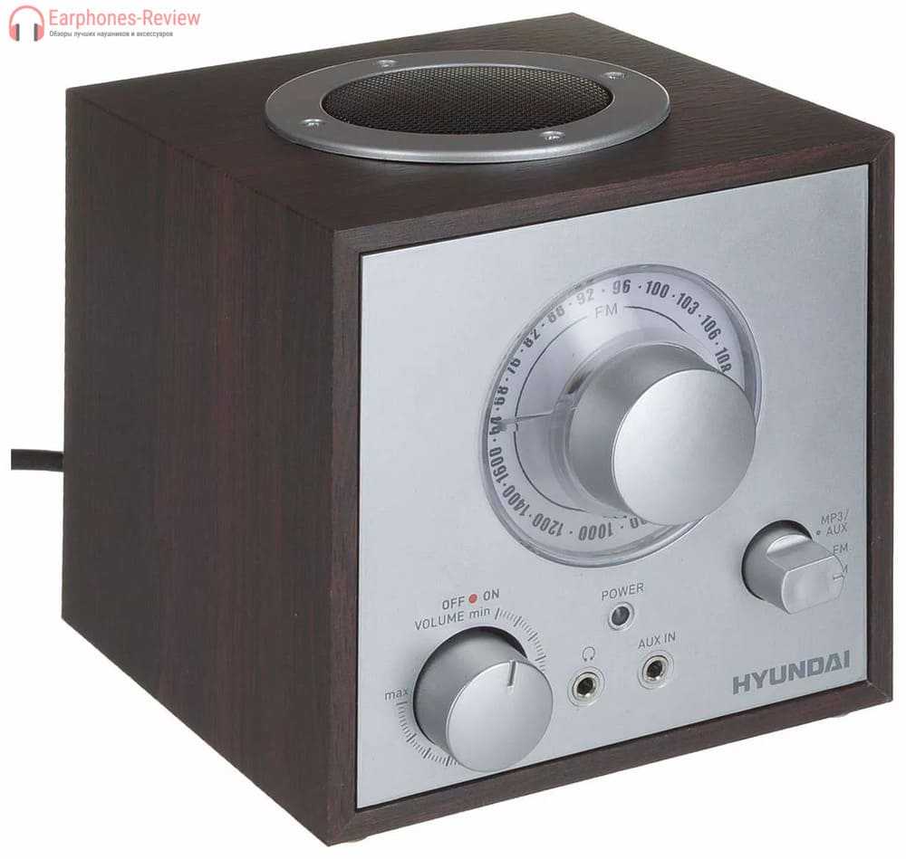 Стационарный приемник Hyundai H-SRS200 сразу привлекает внимание своим дизайном и почти кубической формой. Корпус устройства изготовлен из МДФ, а покрытие в цвете вишня имитирует фактуру дерева