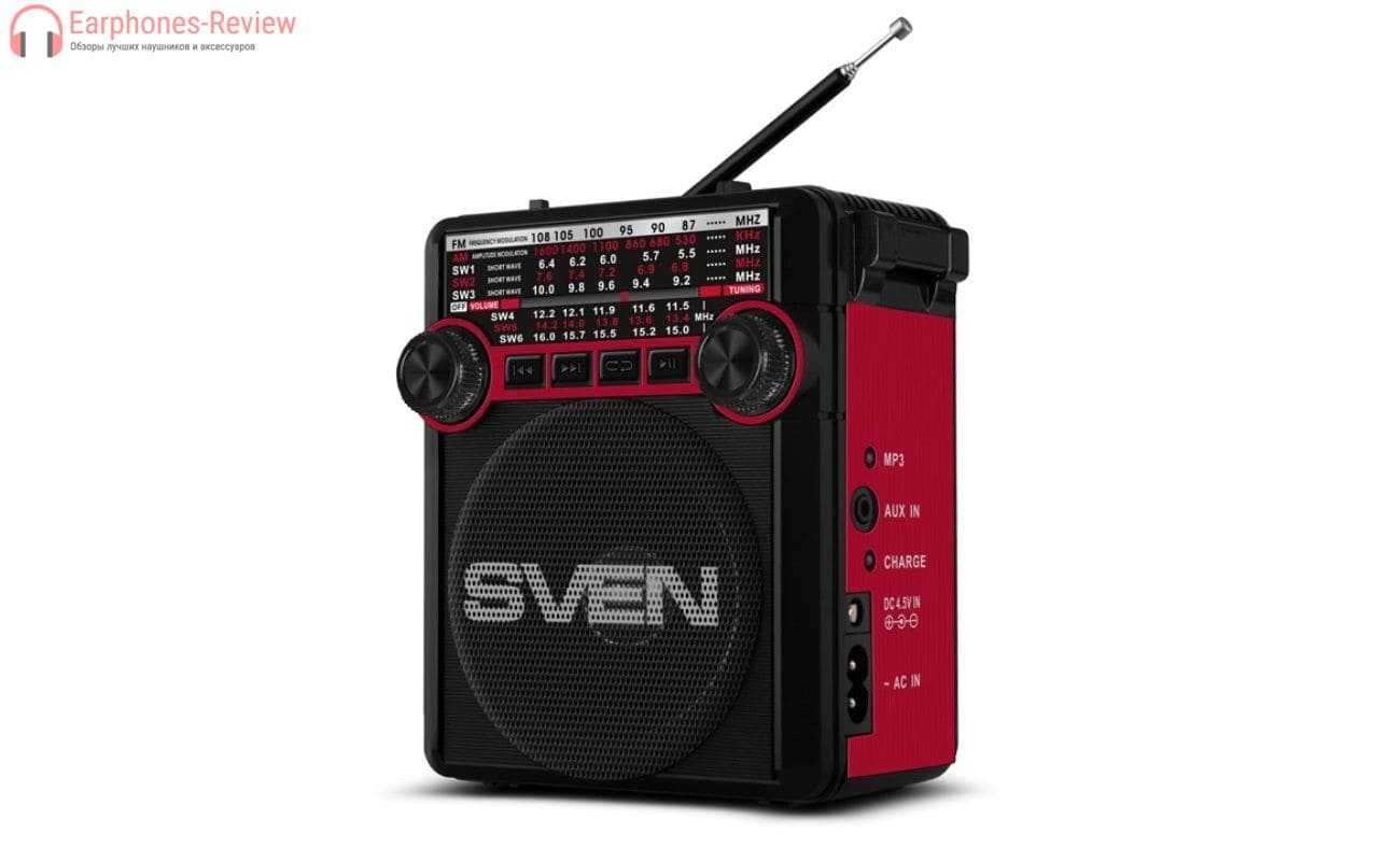 SRP-355 – портативный приемник 12,6×14,2×8,5 см, который можно поставить на стол или взять с собой на дачу или отдых, используя удобный ремешок для переноски. Устройство со встроенным аккумулятором 900 мАч может работать также от сети и батареек D. Есть 2 варианта дизайна – черная классика и красно-черное исполнение