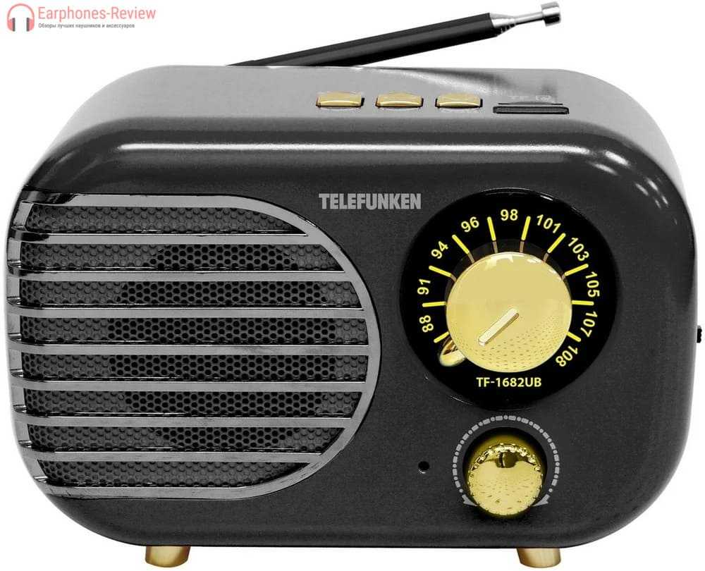 TF-1682UB – недорогой, но довольно функциональный аналоговый радиоприемник. Это стационарная модель со встроенным аккумулятором 1200 мАч. При необходимости ее можно подключить к сети и продолжить эксплуатацию. Можно приобрести устройство с корпусом в классическом черном или ярком оранжевом дизайне в стиле 60-х годов. В обоих случаях кнопки, регуляторы и ножки приемника имеют цвет золота.