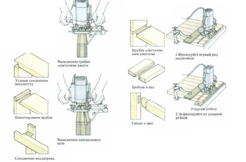 Создание шипов и пазов, при помощи которых будет обеспечиваться соединение двух деревянных заготовок, предполагает, что на боковой поверхности бруса или доски ручным фрезером делается выборка материала. При этом должны быть строго выдержаны все геометрические параметры элементов будущего соединения.
