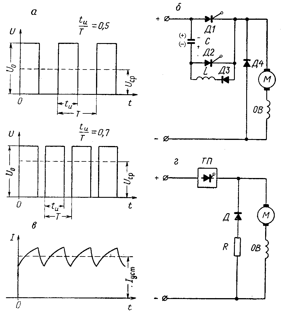 Рис. 19.11. Принципиальные схемы тиристорно-импульсного управления электровозом