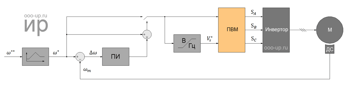 - Инвертор – блок АИМ/ШИМ, работающий по обратному принципу, то есть преобразующий постоянный ток в переменный.