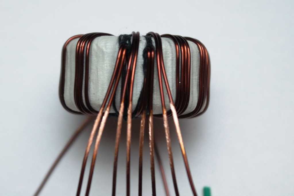 Первичная обмотка содержит 52 витков проводом 0,75мм. Выводы дополнительно изолируются термоусадкой.